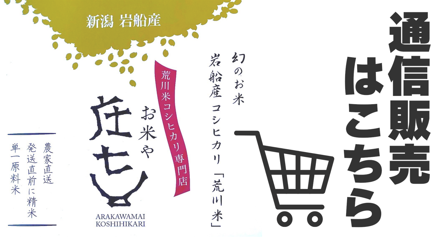 お米や庄七は、新潟県村上市で代々受け継がれる米農家です。地域限定米「岩船産コシヒカリ 荒川米」を中心に、自然豊かな環境で大切に育てたお米を全国の皆さまにお届けしています。